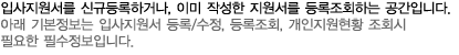 ÀÚµ¿À¸·Î °³ÀÎȸ¿øÀ¸·Î °¡ÀÔµÇ¾î ¿Â¶óÀÎÀ¸·Î ÀÔ»çÁö¿ø¼¸¦ ¿¶÷, ¼öÁ¤, ÀÔ»çÁö¿ø ÇöȲ µîÀ» Á¶È¸ÇÒ